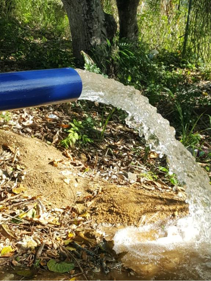En la zona media se construyó una estación de bombeo de relevo con dos electrobombas de eje vertical de 10 HP conectadas a un deposito existente.